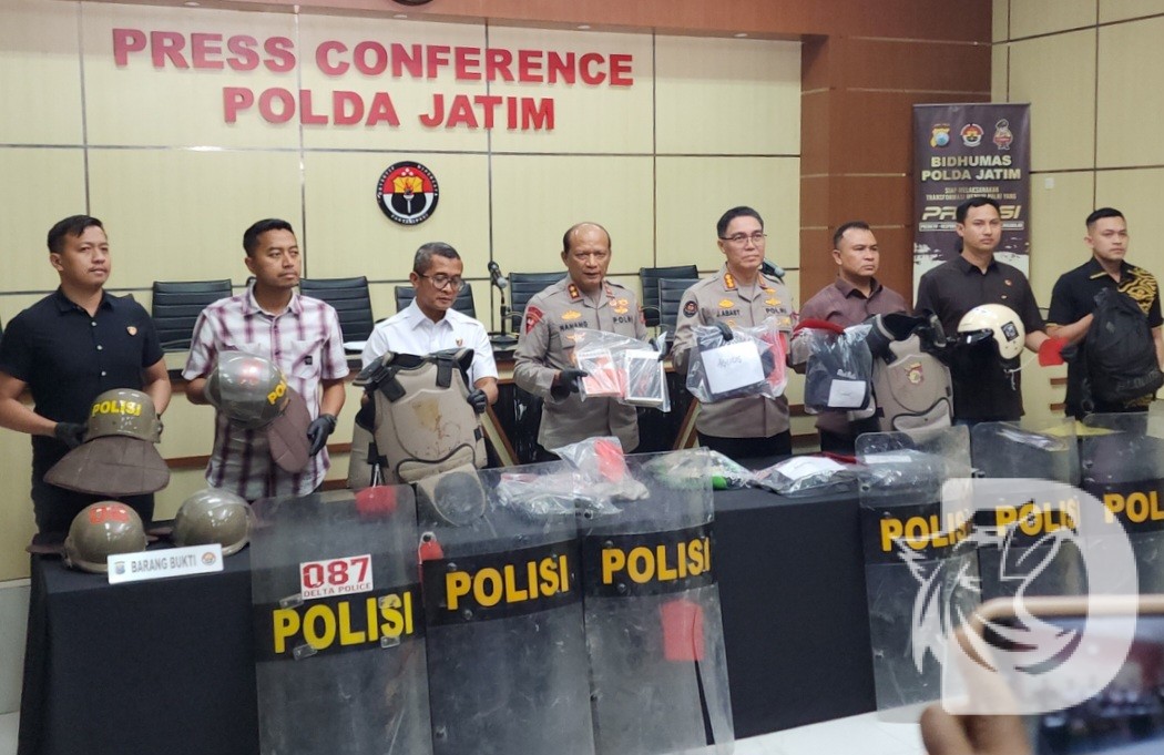 Detiknews.id Surabaya – Enam pelaku kasus kerusuhan, penjarahan, dan pembakaran fasilitas umum, diamankan Ditreskrimum Polda Jatim. Konferensi pers dipimpin langsung oleh Kapolda Jatim, Irjen Pol Nanang Avianto, didampingi Dirreskrimum Polda Jatim, Kombes Pol Widi Atmoko dan Kabid Humas Polda Jatim, Kombes Pol Jules Abraham Abast.