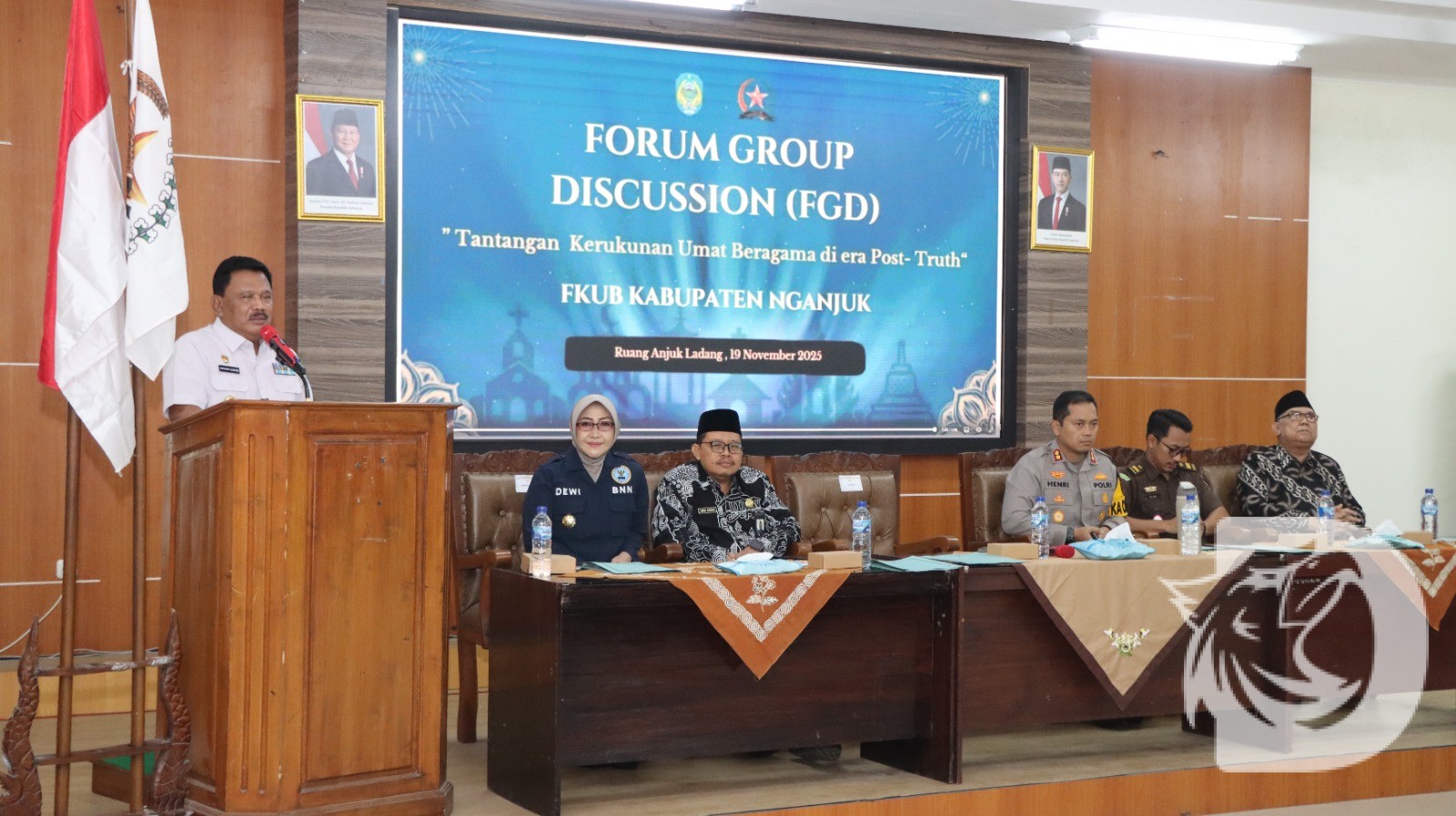 Detiknews.id Nganjuk – Forum Kerukunan Umat Beragama (FKUB) Kabupaten Nganjuk menggelar Focus Group Discussion (FGD) dengan tema “Tantangan Kerukunan Umat Beragama di Era Post Truth” yang diikuti Forkopimda Nganjuk, Kesbangpolimas, tokoh agama, dan tokoh masyarakat, Rabu (19/11/25).