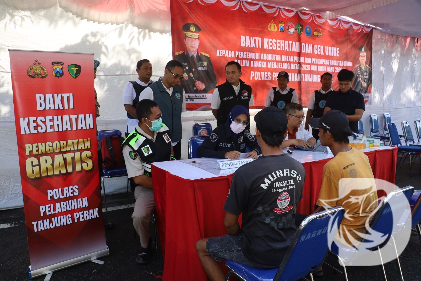 Pada Jum’at (12/12/25), aparat kepolisian berkolaborasi dengan BNNK Surabaya menggelar kegiatan Bakti Kesehatan dan Tes Urine bagi para pengemudi angkutan umum, angkutan antar pulau, serta ojek online (Ojol) yang melintas di kawasan Gate Pelabuhan Jamrud, Jalan Perak Timur.
