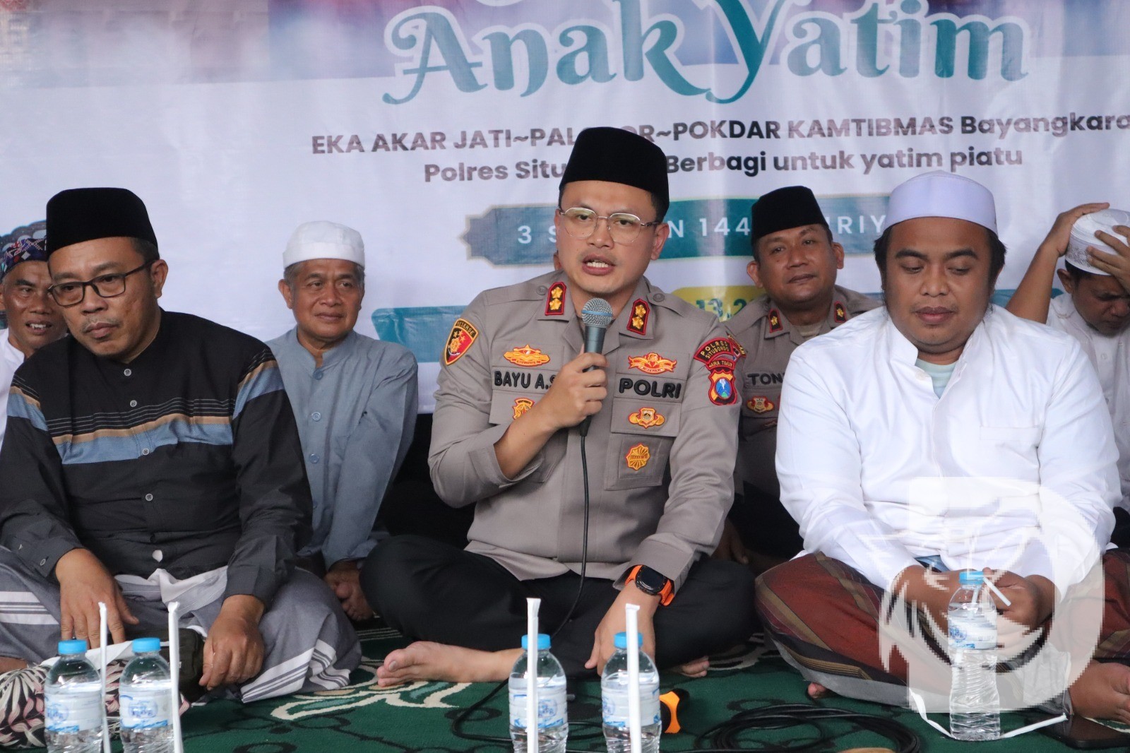 Pada kesempatan tersebut, AKBP Bayu Anuwar juga memberikan santunan kepada anak yatim secara simbolis.