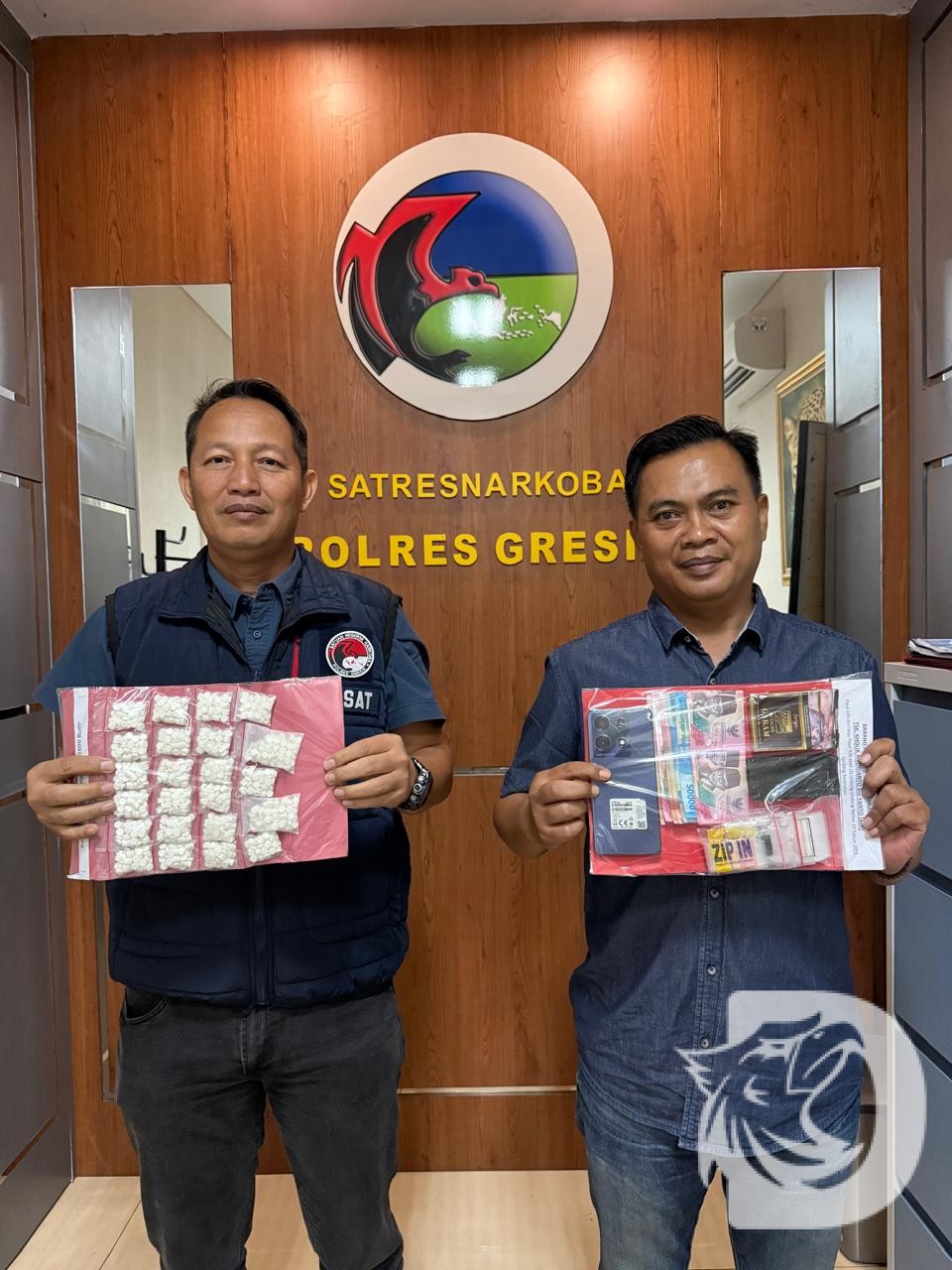 Kasat Resnarkoba Polres Gresik AKP Ahmad Yani mengatakan, penangkapan berawal dari informasi adanya peredaran pil logo LL yang dilakukan pelaku.