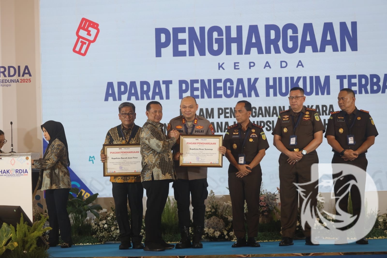 Penghargaan diberikan langsung dalam sesi utama HAKORDIA 2025 sebagai bentuk apresiasi atas capaian kinerja Polres Sumenep Polda Jatim dalam penanganan perkara korupsi secara cepat, profesional, dan berintegritas.