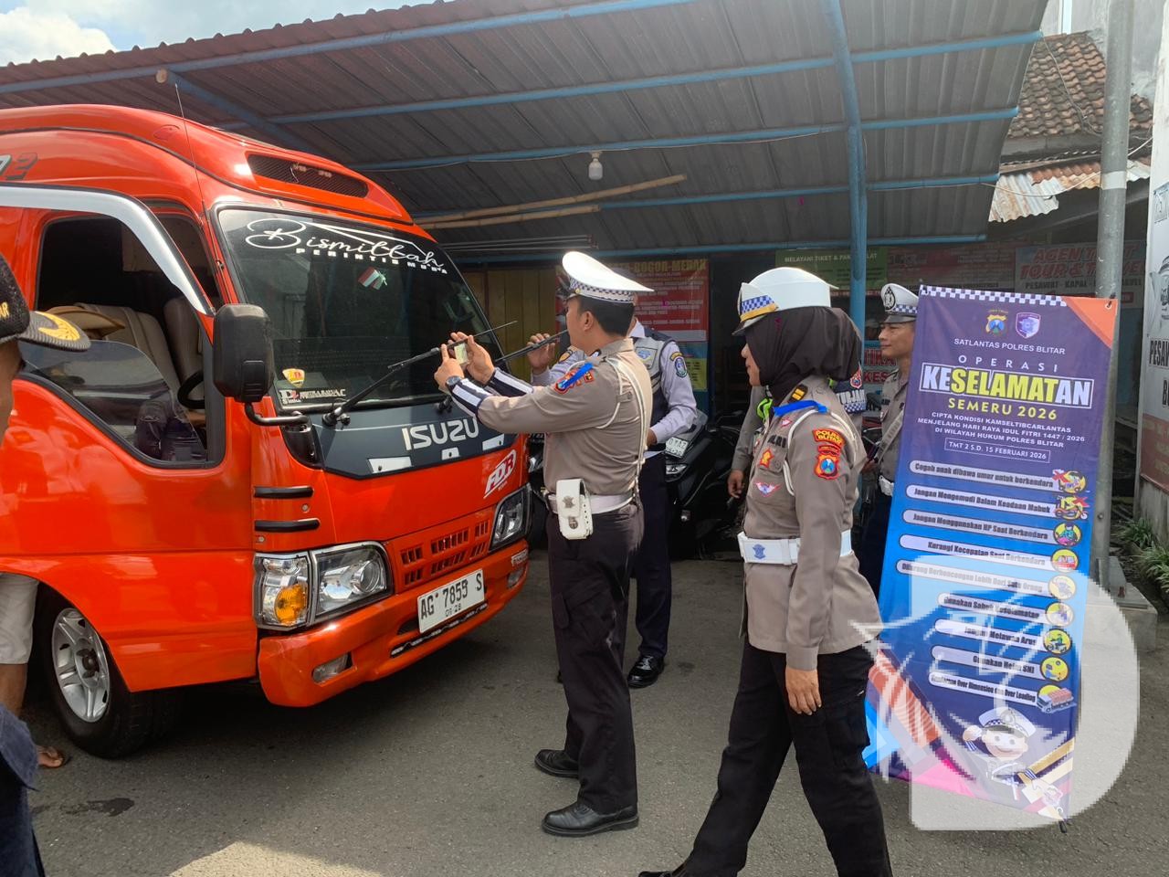 Dalam Operasi Keselamatan Semeru 2026, petugas menggelar aksi simpatik di kawasan Terminal Kesamben dengan memberikan edukasi langsung sekaligus kepada Sopir bus, penumpang dan pengguna jalan yang tertib.