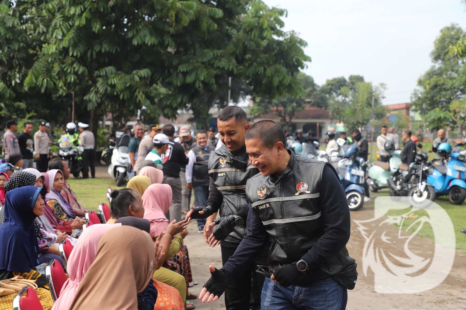 Tanpa seremoni panjang, para peserta social riding langsung turun tangan membagikan ratusan paket sembako kepada warga yang telah menunggu.