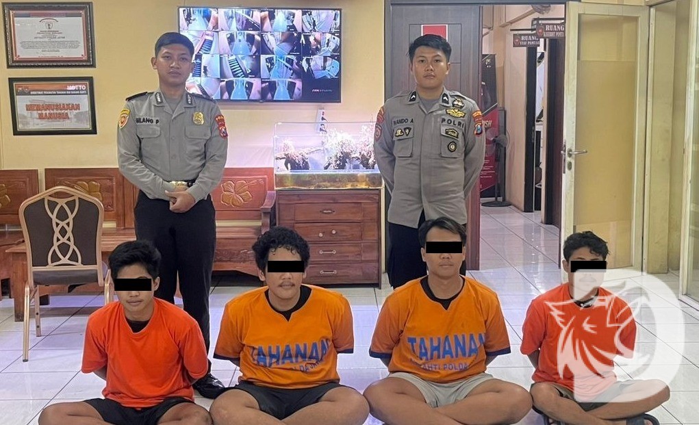 Detiknews.id Surabaya – Empat pelaku pengeroyokan yang menyebabkan hilangnya nyawa seseorang saat konser euforia musik hardcore di Pasar Tunjungan, diamankan Kepolisian Satreskrim Polres Pelabuhan Tanjung Perak Surabaya.