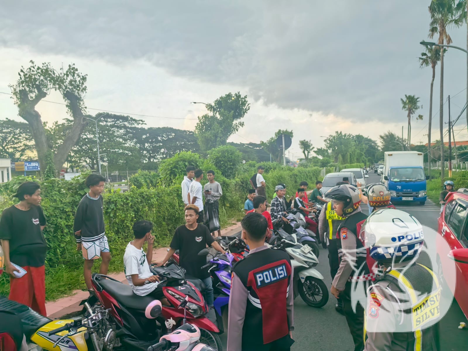 Puluhan remaja yang membawa sepeda motor ini berkumpul di lokasi. Satlantas Polres Pelabuhan Tanjung Perak langsung ke lokasi. Mengetahui kedatangan polisi, puluhan remaja ini langsung membubarkan diri dan meninggalkan lokasi.