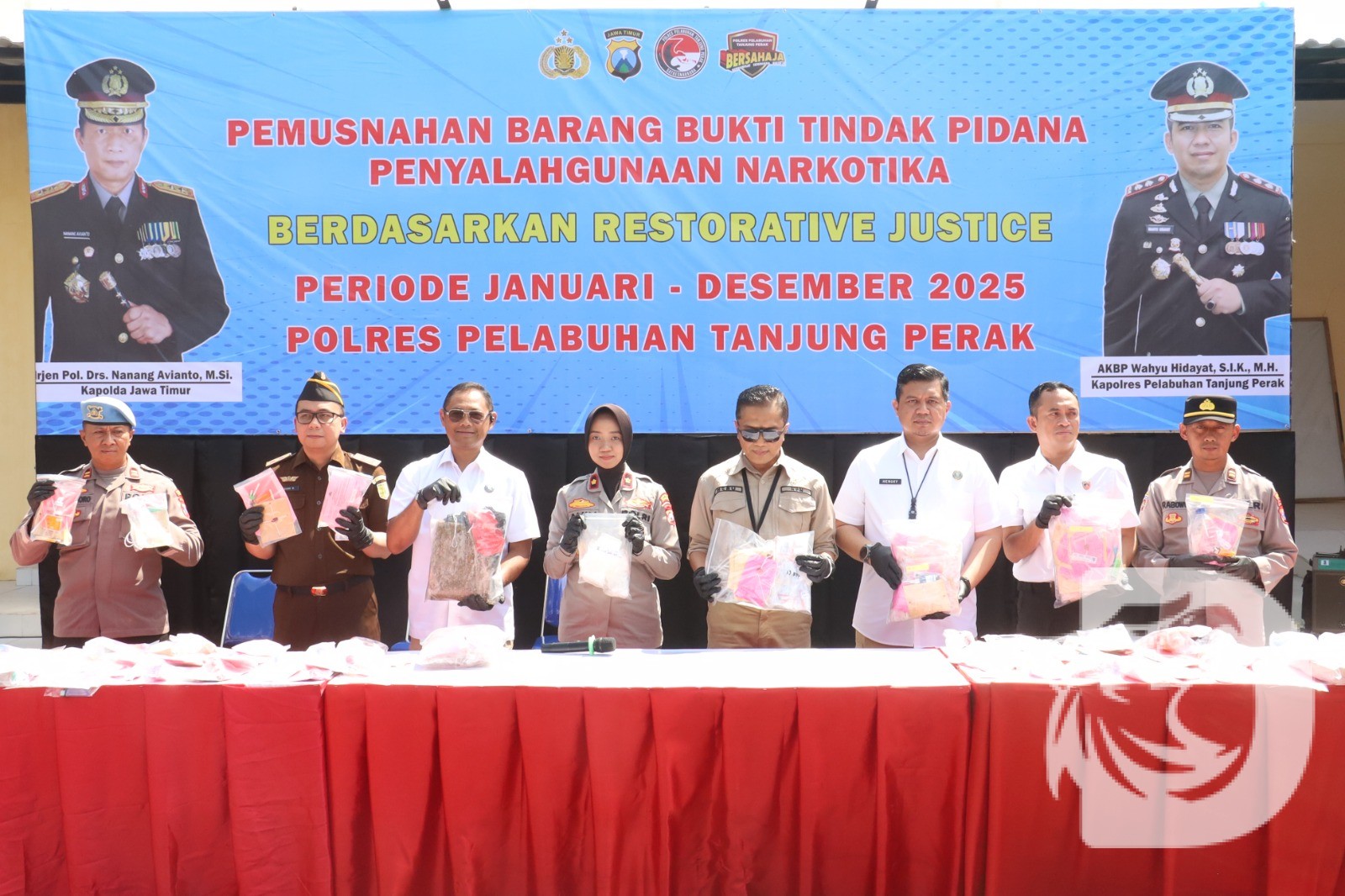 Pemusnahan barang bukti ini dipimpin langsung oleh Wakapolres Pelabuhan Tanjung Perak, Kompol Anindita Harcahyaningdyah, mewakili Kapolres AKBP Wahyu Hidayat.