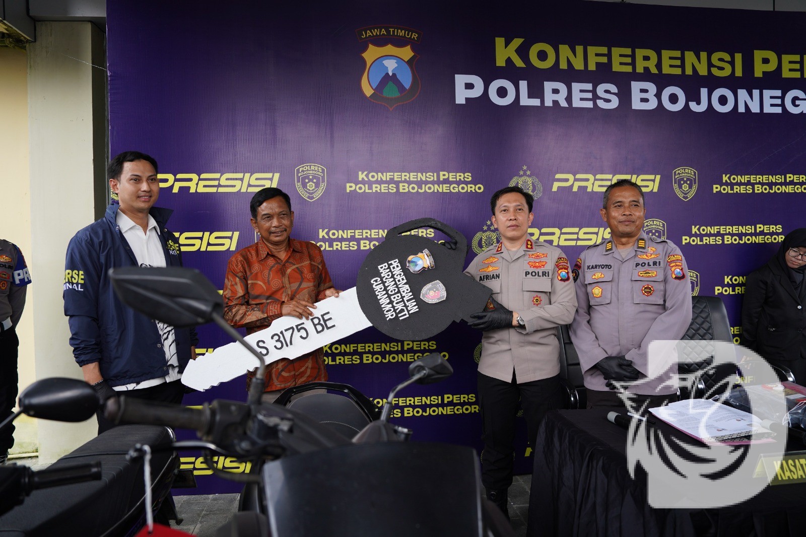 Dalam kesempatan yang sama, Polres Bojonegoro turut menyerahkan kembali kendaraan milik korban yang sempat dicuri. Para korban mengaku bersyukur dan berterima kasih karena kendaraan mereka berhasil ditemukan tanpa dipungut biaya dalam proses pengembaliannya. (D1)